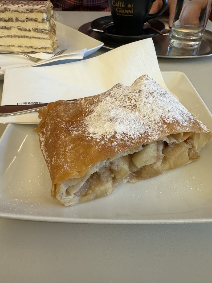 melange 9/10 the coffee is so good and creamy. love it! I don't understand why most coffee in Vienna tastes really good apfel strudel 8.5/10 the taste and texture is perfect combination between sweet and sour. I just wish they could serve it warm and there's vanilla ice cream option to make it even better easterhazy 8/10 the texture is okay, love the almond but it's just a bit too sweet for my taste contrary to what google reviews said, I feel the service is friendly enough especially the manager